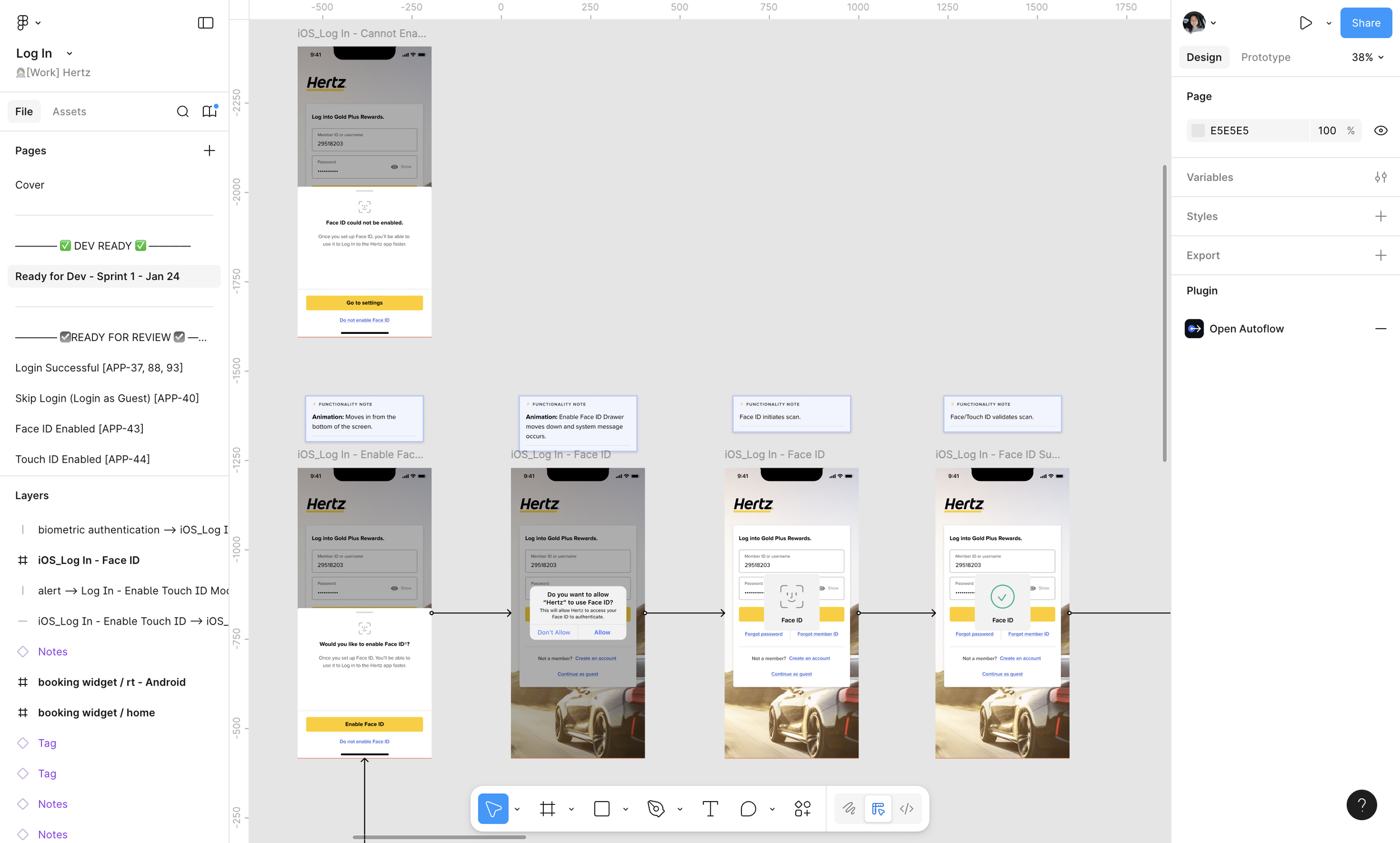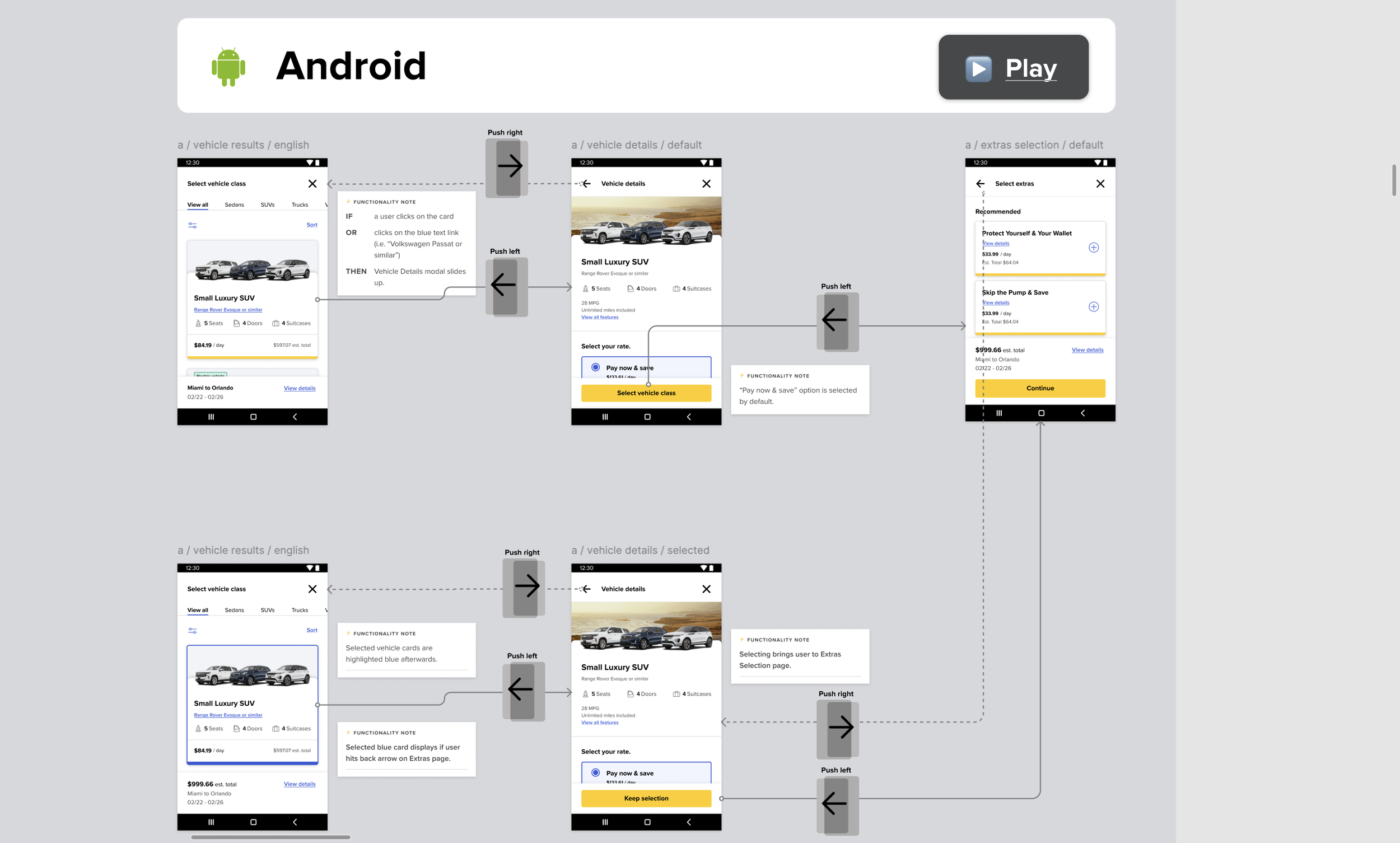 Once designs were ready for development, we add our cleaned up our flows with functionality notes to a page dedicated to a dev sprint. This allowed us and the developers to stay organized and know when designs were released to dev.