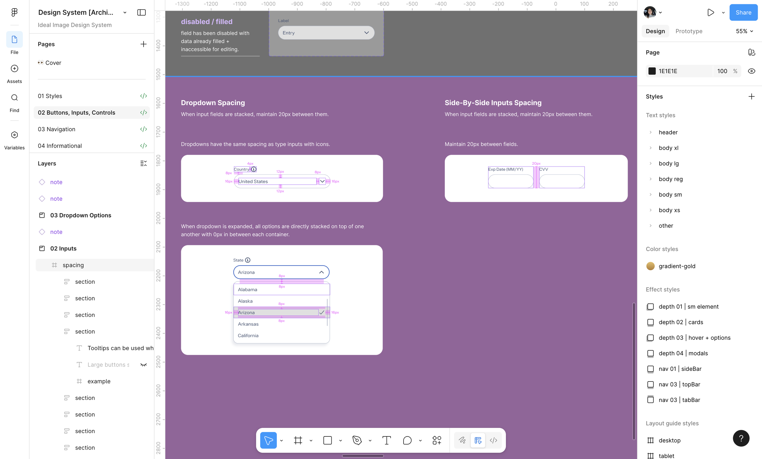 I created documentation as I went, outlining how each component could be used, its spacing, and interactions. This was also helpful when doing dev hand-offs as it laid out each variant and how they should be expected to behave.